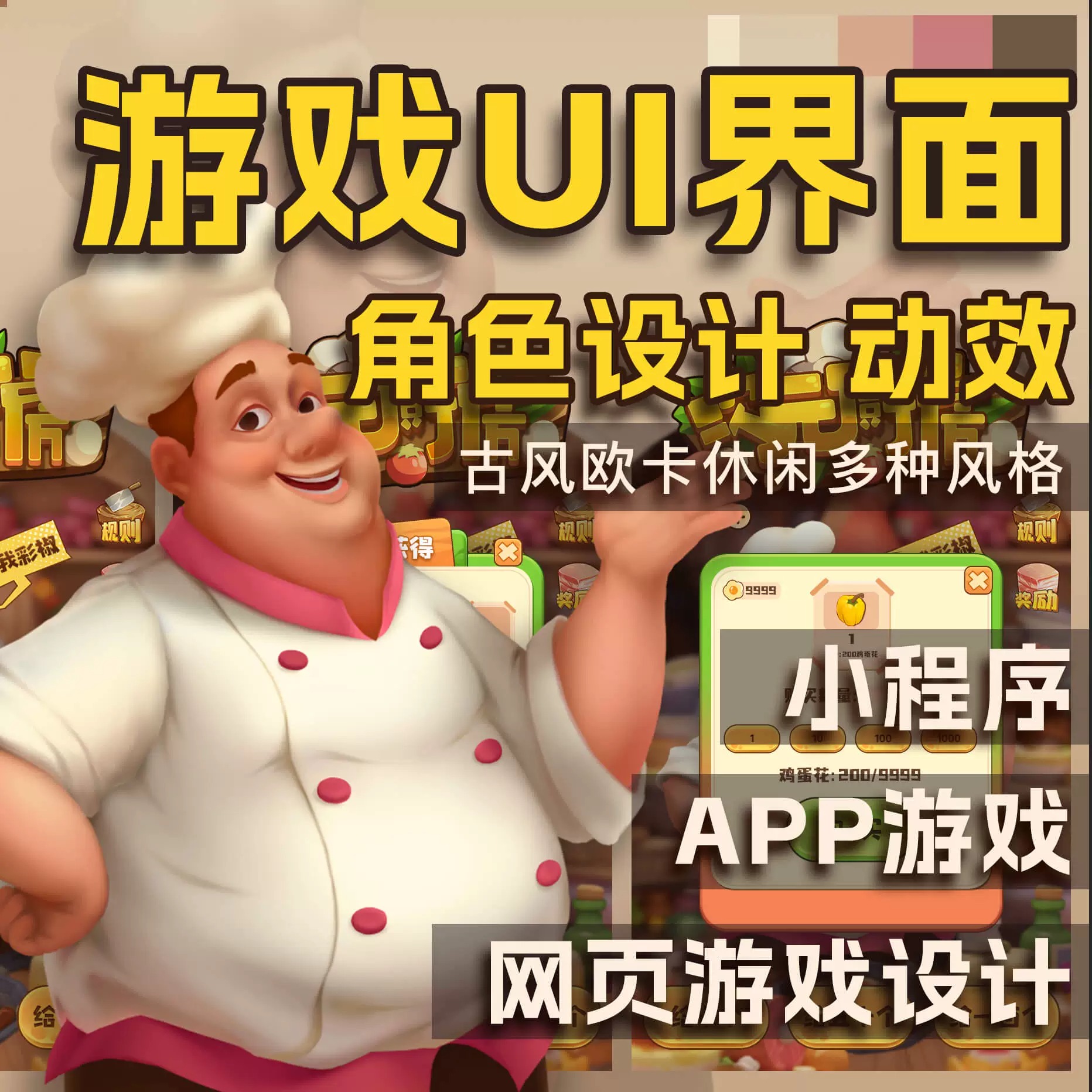 游戏ui美术外包界面设计手绘图标icon美宣定制小程序app页面