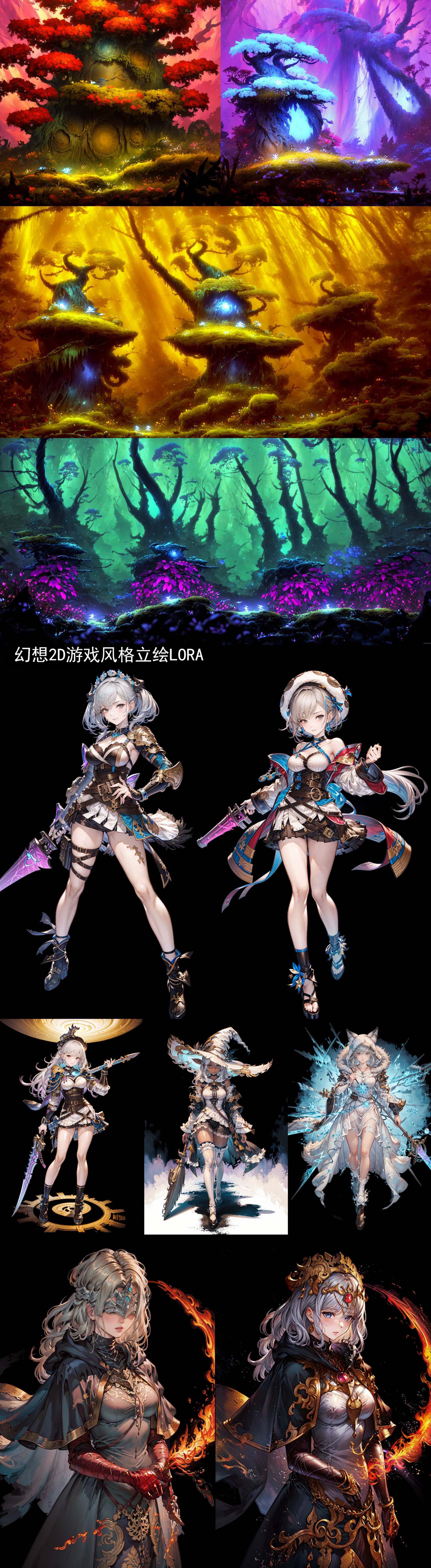 AI代绘画出图UI设计辅助三视图立绘参考人物美宣游戏原画图标游戏